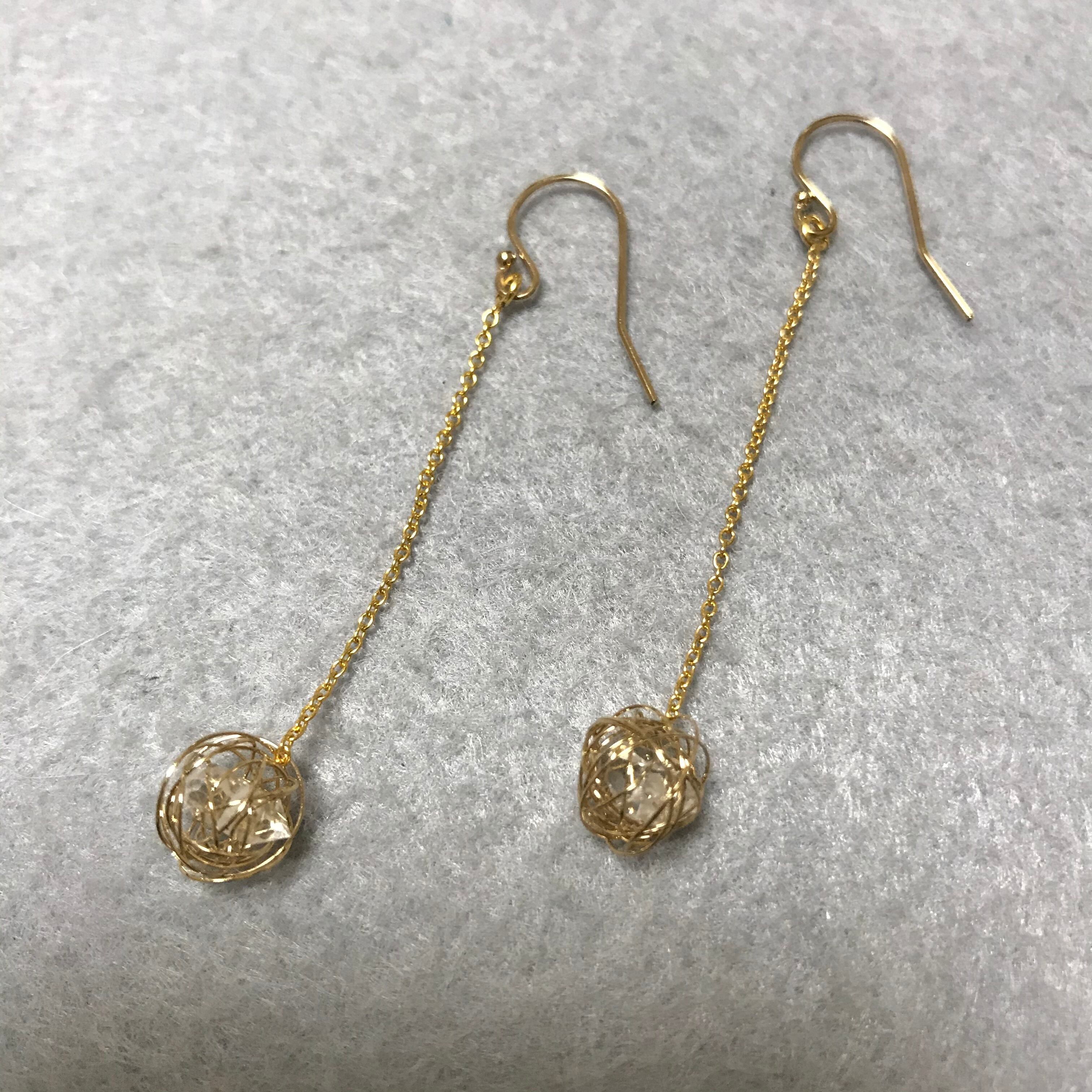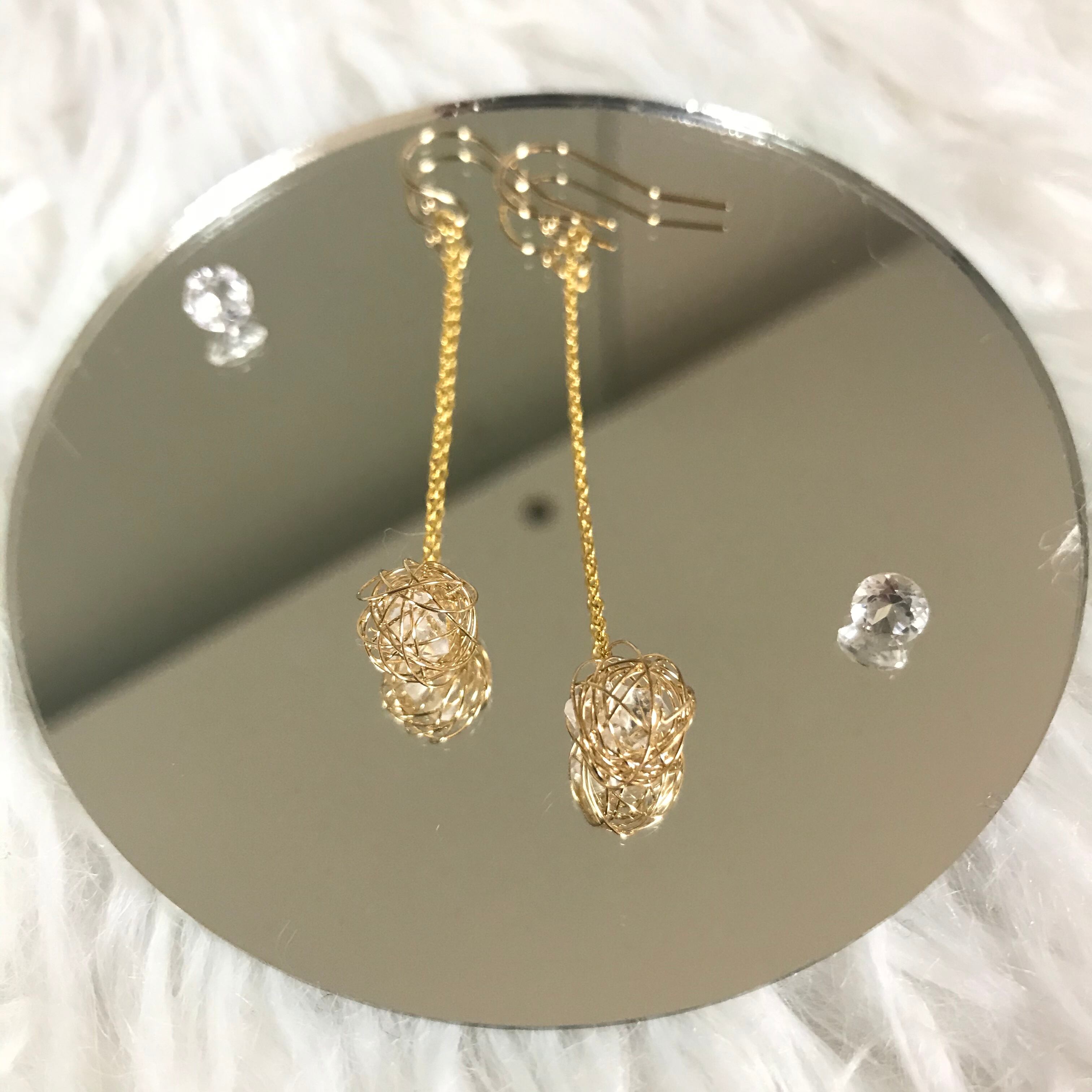 #天然石#クォーツ#水晶#両剣水晶#シンプル#ピアス#誕生石#4月#14kgf#パワーストーン#天然石アクセサリー#浄化#癒し#HANAISHI#ダブルポイント水晶