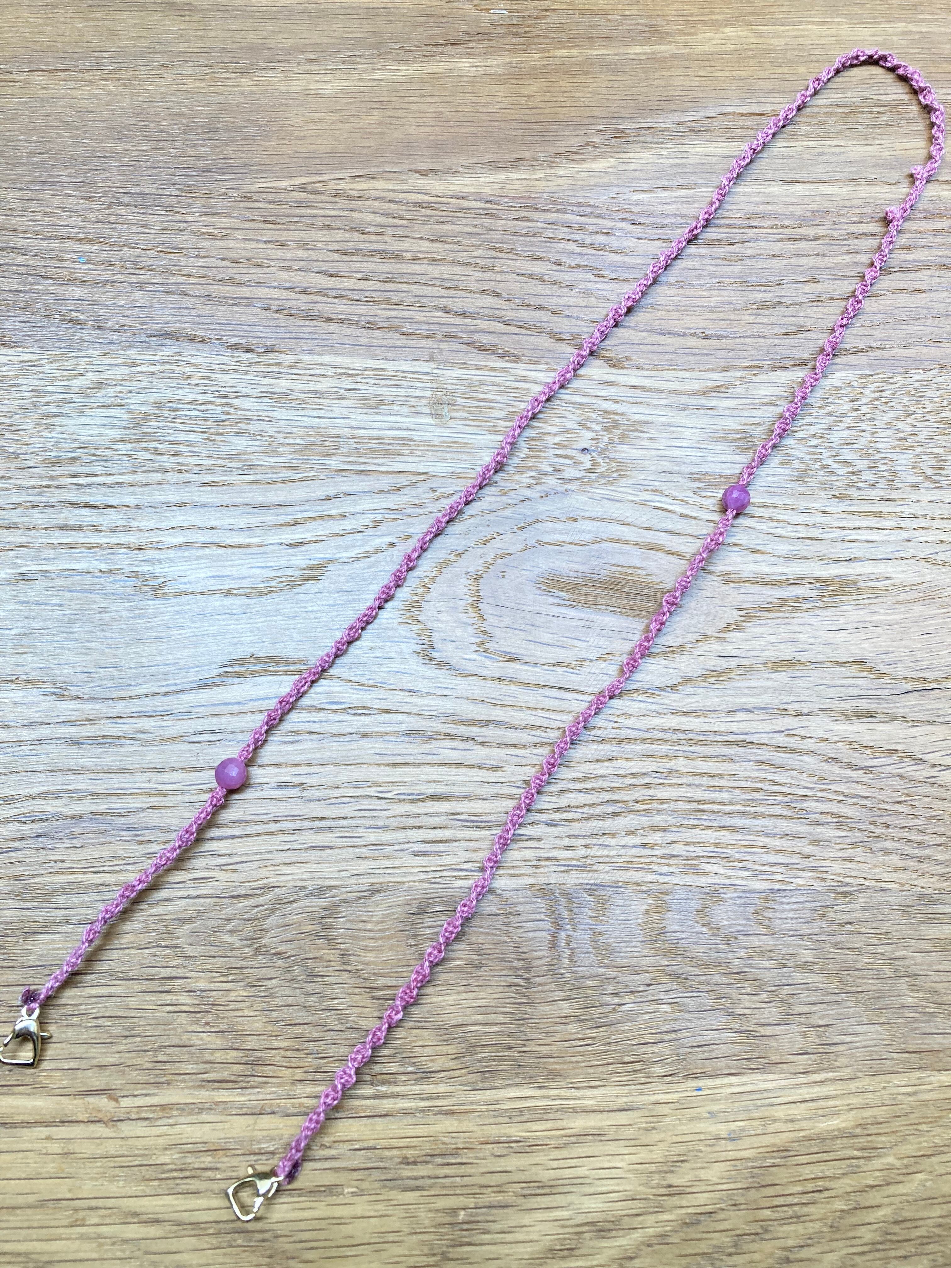 ルビーと草木染めヘンプ糸のマクラメ編み マスクストラップ♡