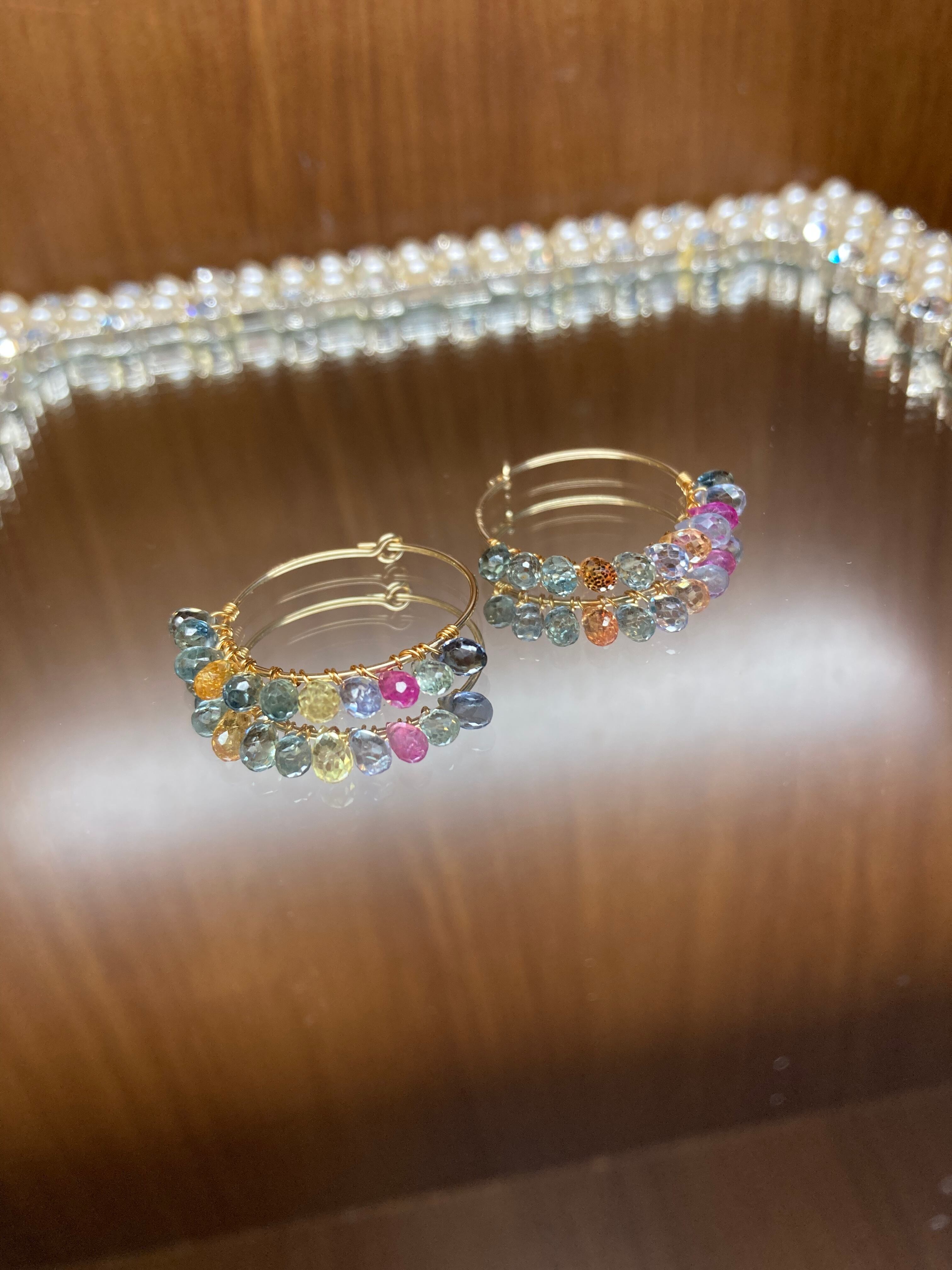 マルチカラーサファイアのフープピアス♡