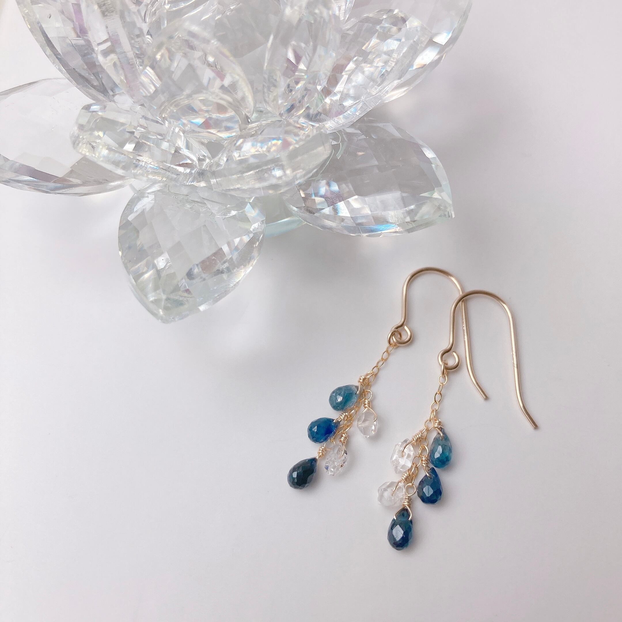 サファイアと水晶の シャンデリアピアス♡9月お誕生石