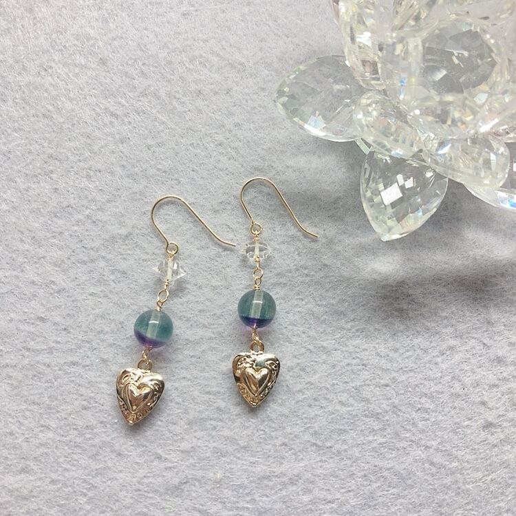 フローライトと両剣水晶の魔女のピアス♡