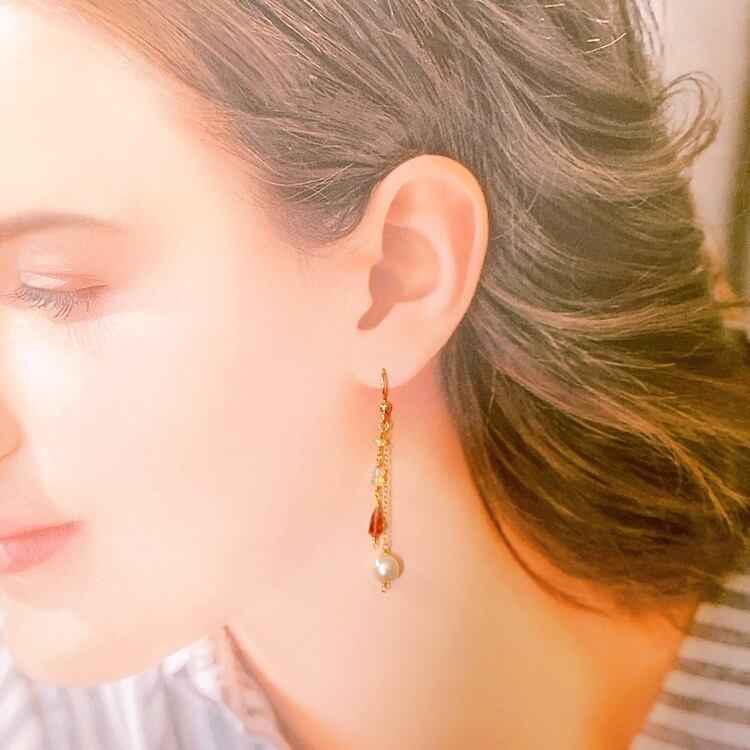 パールとピンクトルマリンとオパールのピアス♡