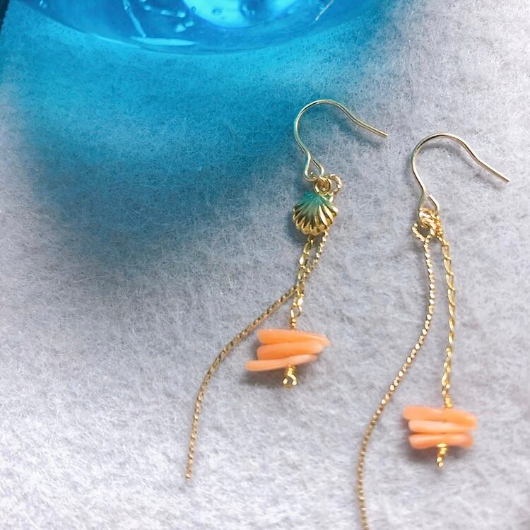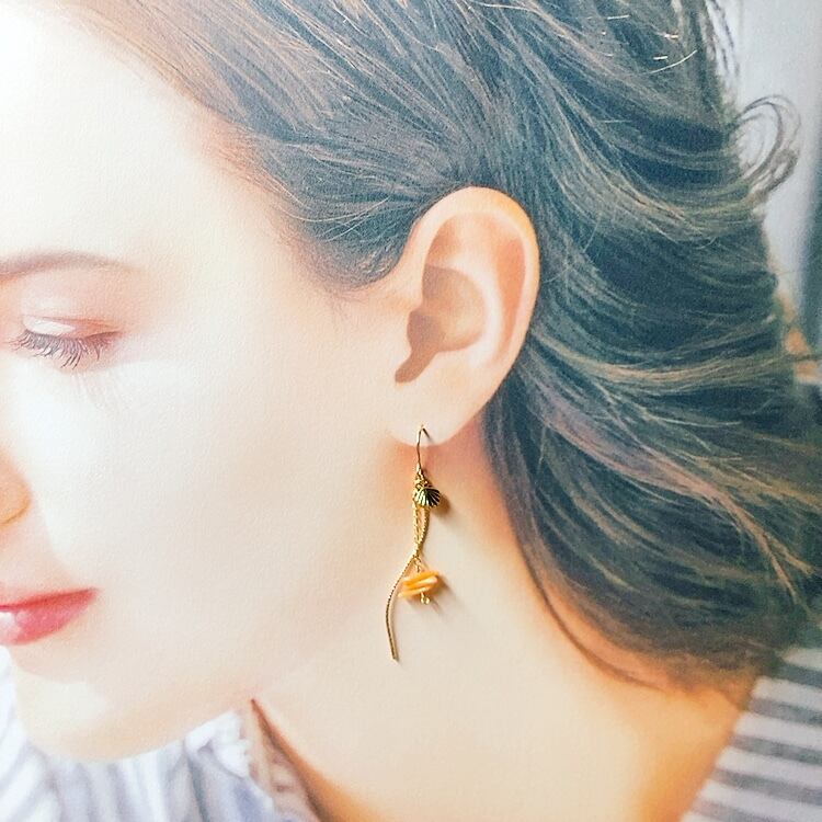 シェルの小さなチャームが揺れる海のピアスです
