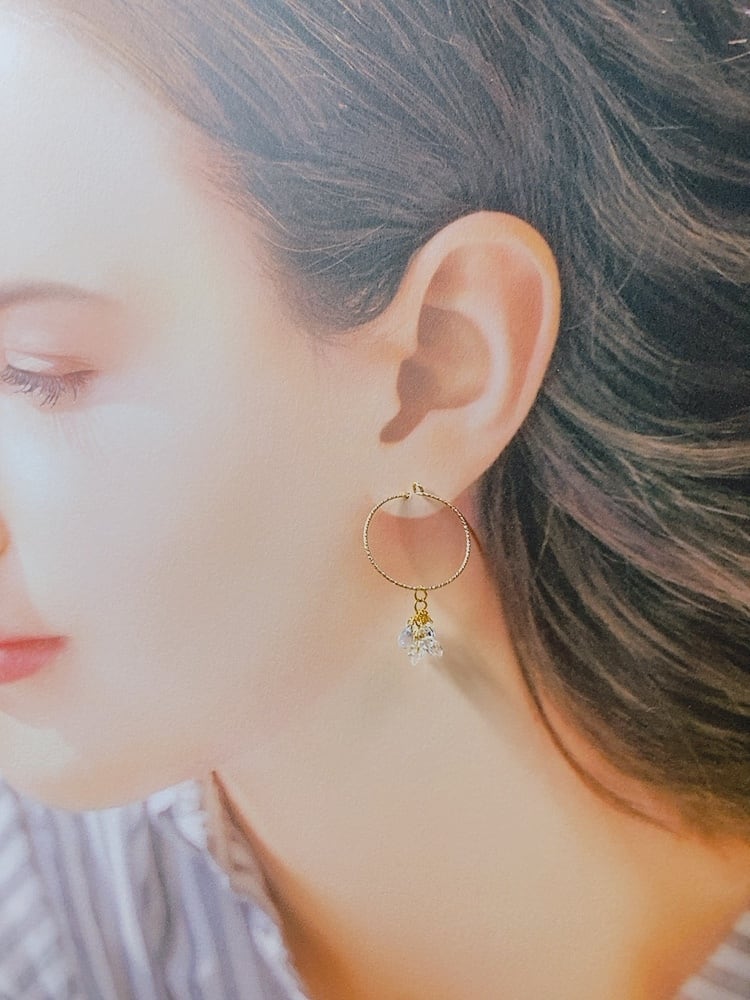 水晶がキラキラ、そのなかに淡いブルーサファイアの雫がひとつぶ輝く