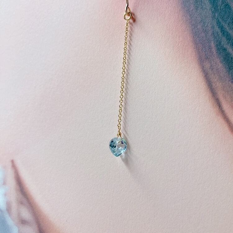 ハートカットの上質なブルートパーズ一石が揺れるピアスです。