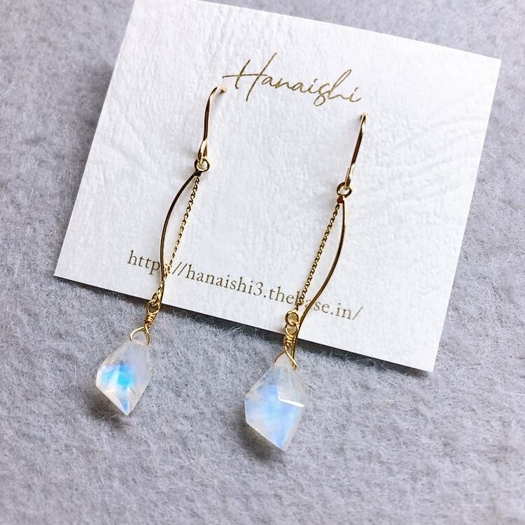 シラー(層状に重なった鉱物の結晶の間で光が反射する際に、石の表面に見られる虹色の光)がとても綺麗なムーンストーンを 厳選して選びました