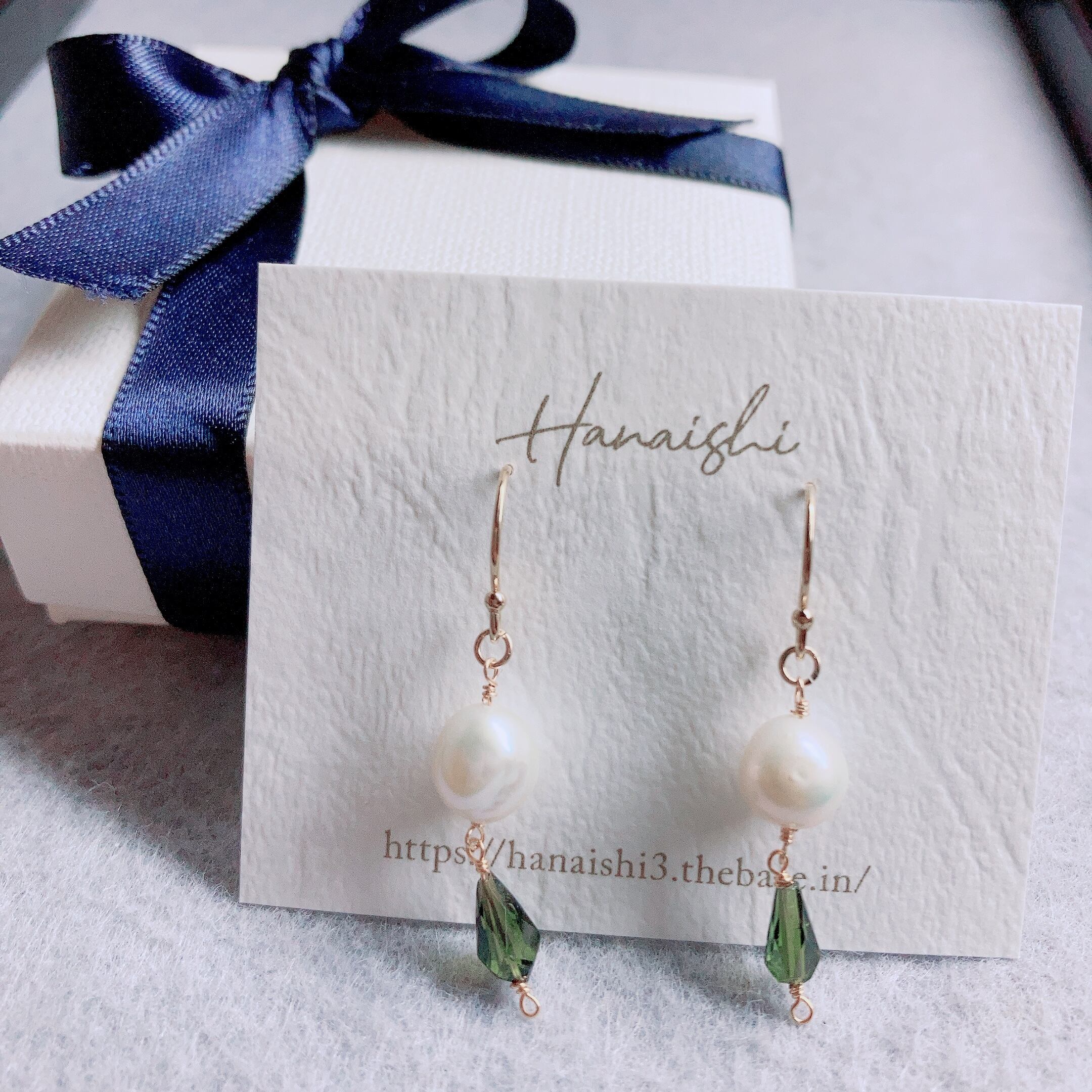 パールと深みのあるグリーントルマリンのコンビネーションが上品なピアスです。
