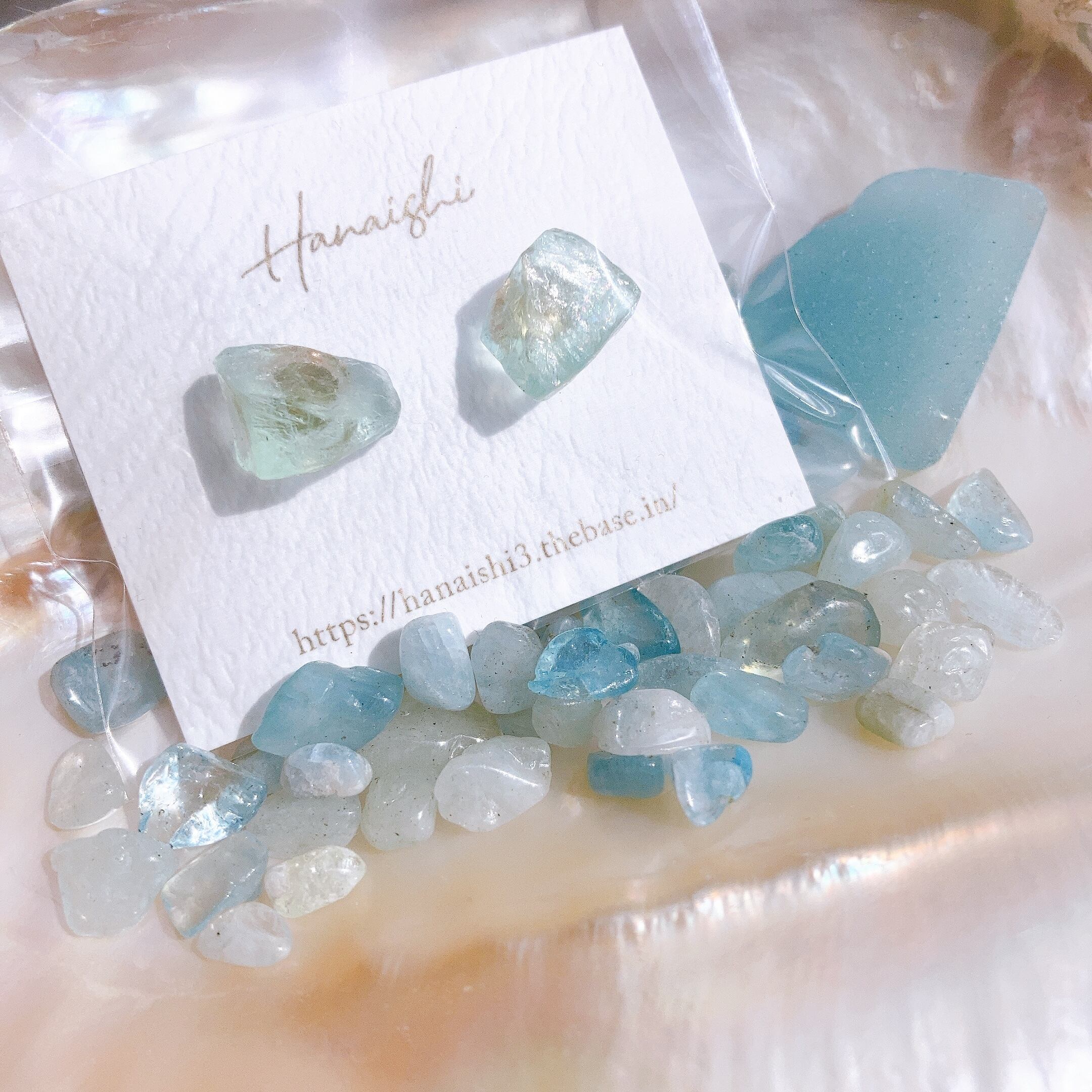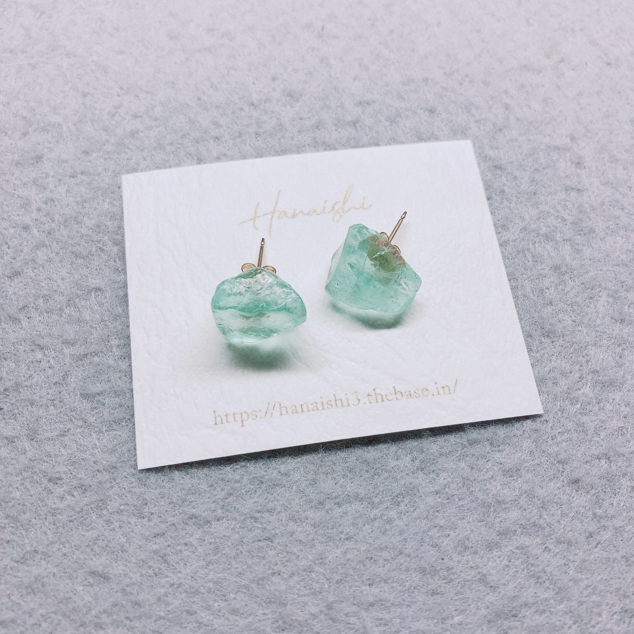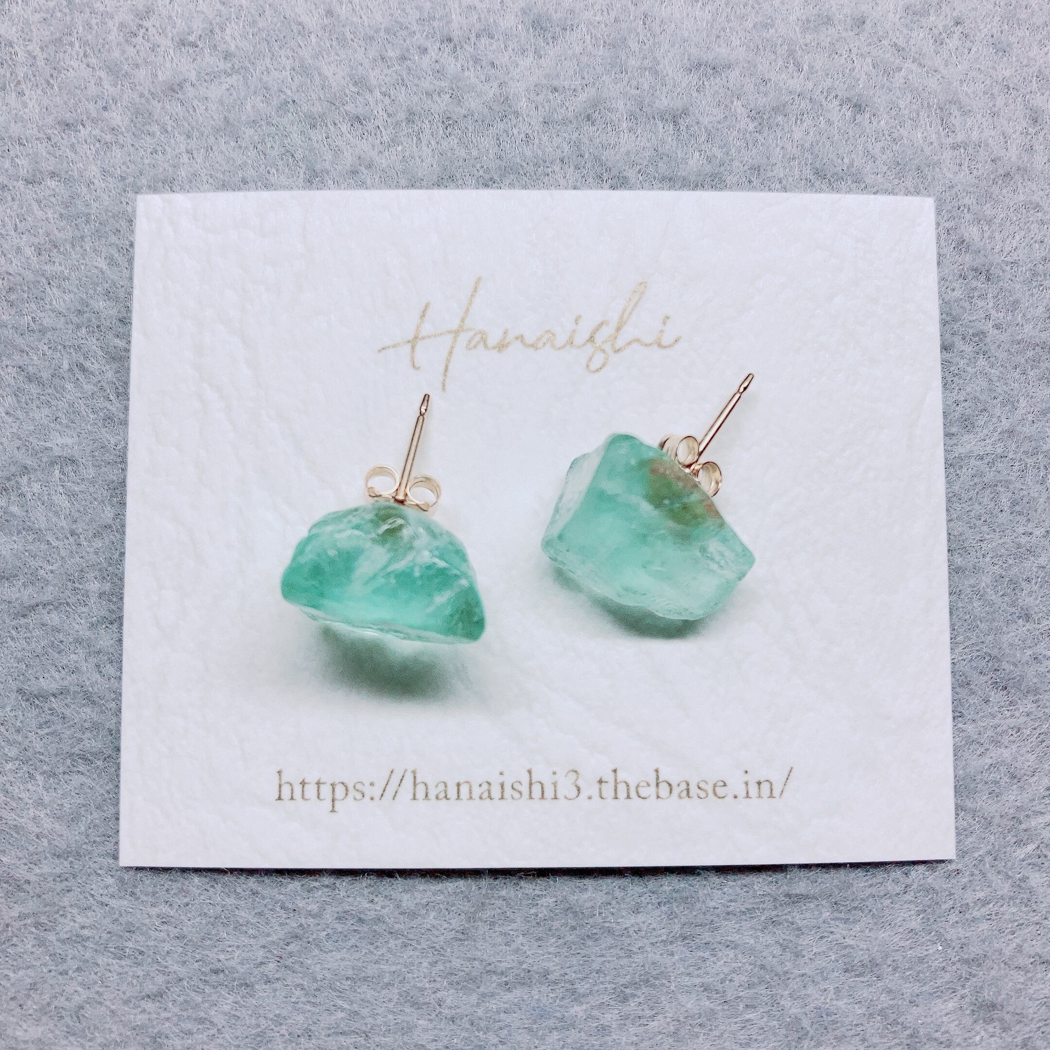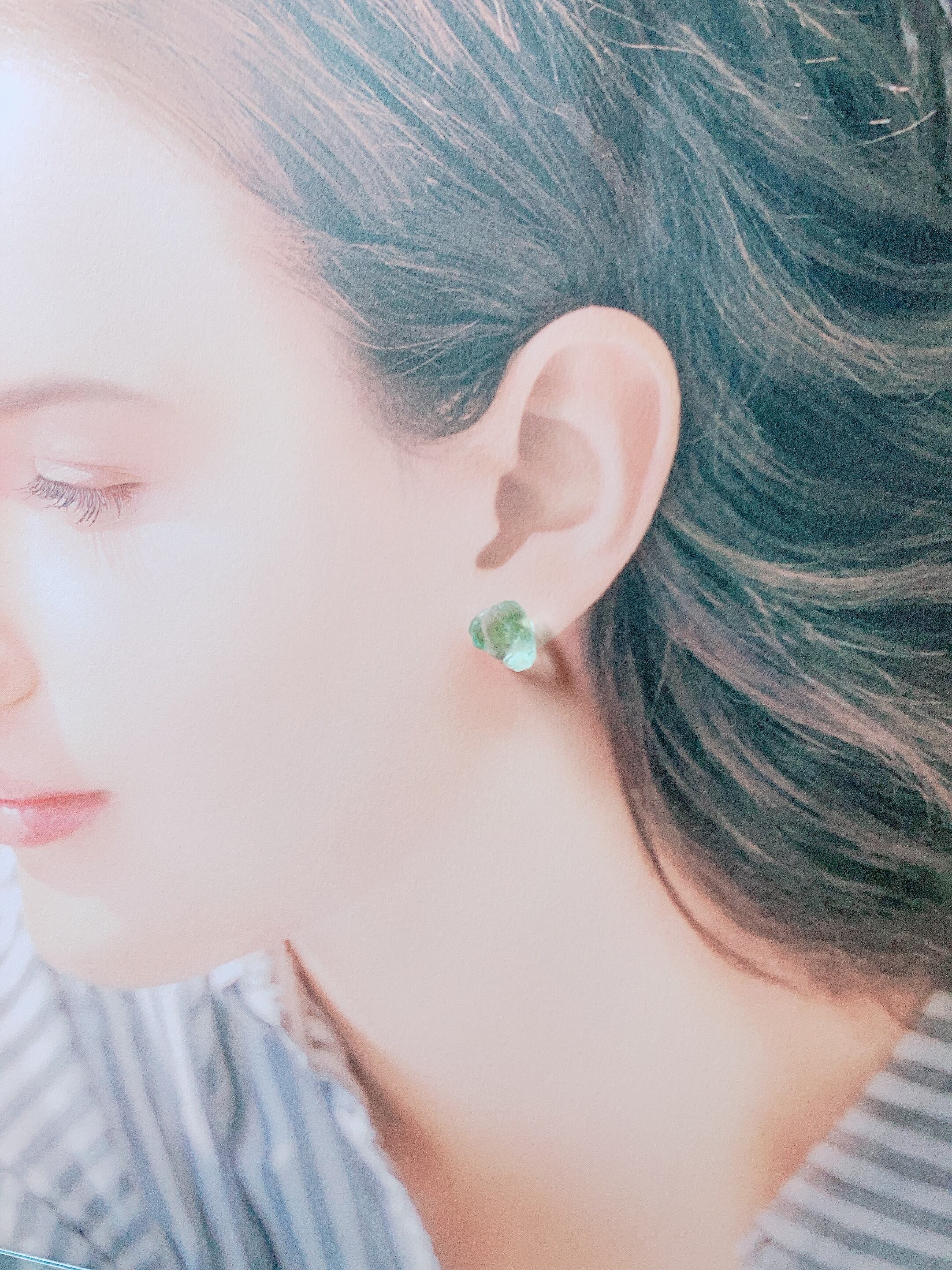 フローライトの原石の魅力をそのままに身につけていただけるピアスです
